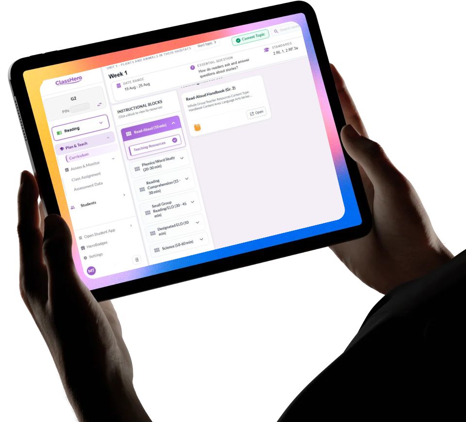 ClassHero bridges the gap between your district’s high-quality curriculum, resources, and assessments and the daily reality of the classroom.